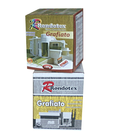 Grafiato: Revestimento, hidro-repelente e decorativo à base de resina acrilica, cargas minerais, água, espessantes, bactericidas e quartzo.